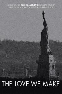 "The Love We Make", a film directed by Albert Maysles ("Gimme Shelter") and Bradley Kaplan, follows Paul McCartney as he journeys through the streets of New York City in the aftermath of the destruction of the World Trade Center on September 11th, 2001. It also chronicles the planning and performance of the benefit concert that took place less than six months after the attacks: "The Concert For New York City".