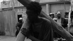 The wastelands and crowded streets of an African country are traversed by a woman bearing a wooden cross on her back. She is followed by sellers, beggars and passersby, outraged voices, pity and curious glances. Parallel to her, among a herd of sheep, a lamb toddles its way from the far away mountains into the heart of the city, only to find itself dangling, skinned and headless, on a butcher’s shoulder. In the meantime, under the scorching sun, in a roofless house, a woman is persistently knitting a garment, unwinding a thread coiled over her son’s face. ‘Mother, I Am Suffocating. This is My Last Film About You’ is a symbolic social-political voyage of a society, spiralling between religion, identity and collective memory. “I saw in you what they saw, mother. You deserve your war”.